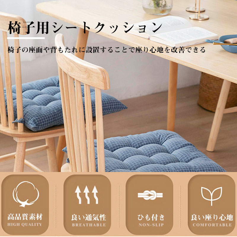 クッション シートクッション ひも付き 椅子用 四角形 43×43cm 洗える シンプル ダイニングチェア クッション フロアクッション 滑り止め 座布団 和風 おしゃれ かわいい 食卓 チェアパット 座面クッション オフィス リビング インテリア クリスマス 人気 ギフト プレゼント