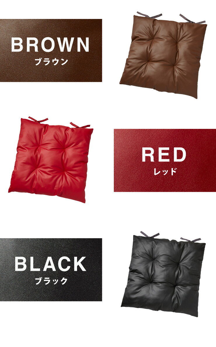 シートクッション レザー調 同色2枚セット 45×45 紐付き 合皮 フェイクレザー ひも付き 正方形 四角 無地 撥水 防刃 2枚セット おしゃれ クッション 座布団 フロアクッション 椅子 椅子用 いす用 チェアパッド【送料無料】