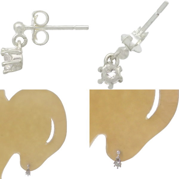 ) 光を受けでキラキラと揺れる6本爪のミルククラウンにバースデーストーンをセッティングしたピアス。