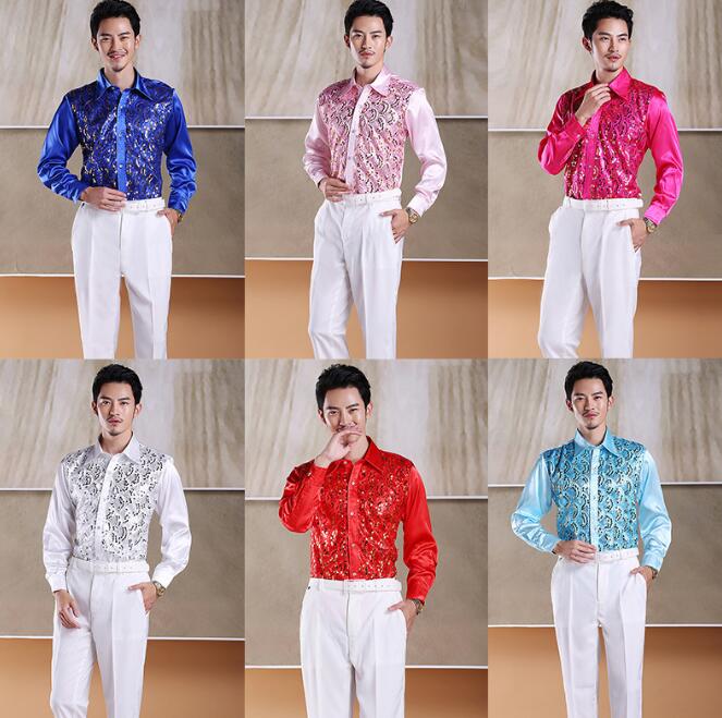 スパンコール ワイシャツ メンズ 演出シャツ タキシードシャツ 結婚式 舞台ダンスウェア ダンス衣装 ステージ衣装 パーティー 撮影衣装 礼服 演出服 長袖 Yシャツ 8色 S M L