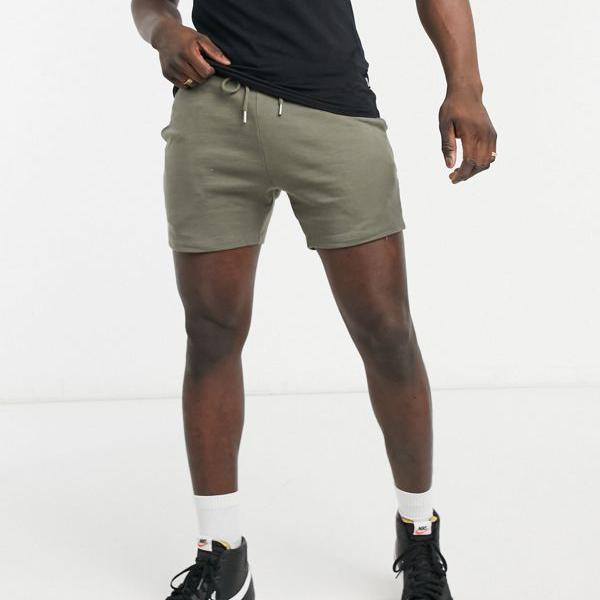 エイソス ASOS asos ASOS DESIGNジャージースキニーショーツ、カーキグリーンのショート丈 パンツ ボトム メンズ 男性 インポートブランド 小さいサイズから大きいサイズまで