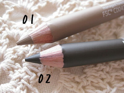 【店長からひとこと】 01ブロンドは、白い紙に書いてみると、色が明るすぎて「かなり明るく髪を染めた人じゃないと似合わないかも…」と思ったのですが、眉にかいてみるとダークブラウンな髪の人にも自然な感じで仕上がりました。
