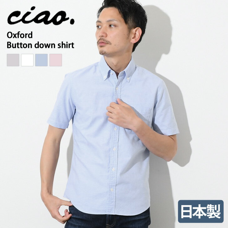 送料無料 【日本製】 ciao チャオ オックスフォードボタンダウン 半袖 シャツ メンズ トップス ワイシャツ Yシャツ おしゃれ カジュアルシャツ 無地 シンプル 羽織 国内生産 綿100% ギフト 贈り物 父の日 夏SALE メール便