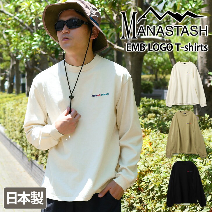 送料無料 MANASTASH マナスタッシュ EMB LOGO 刺繍 Tシャツ メンズ トップス カットソー 長袖 ロンT ロングTシャツ 綿100% 日本製 国産 刺しゅう ロゴ シンプル 無地 おしゃれ 丸首 ギフト メール便