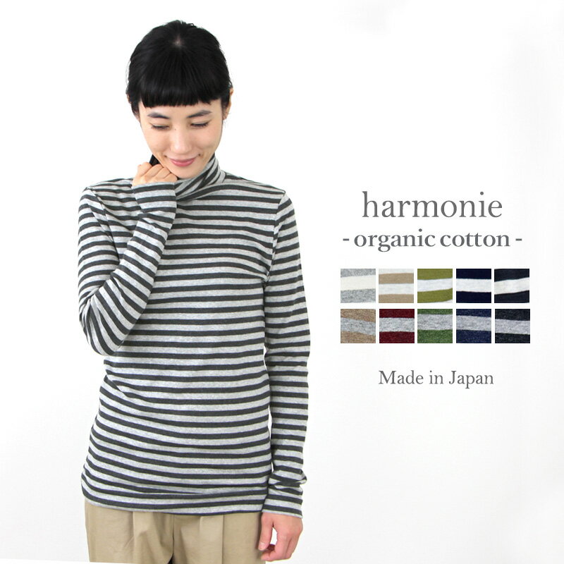 【あす楽・メール便対応】ボーダー タートル 綿100% レディースharmonie -Organic Cotton-( アルモニ オーガニック コットン)タートルネック ボーダー8100061/82180061 日本製 長袖 秋 冬 ラッピング対応