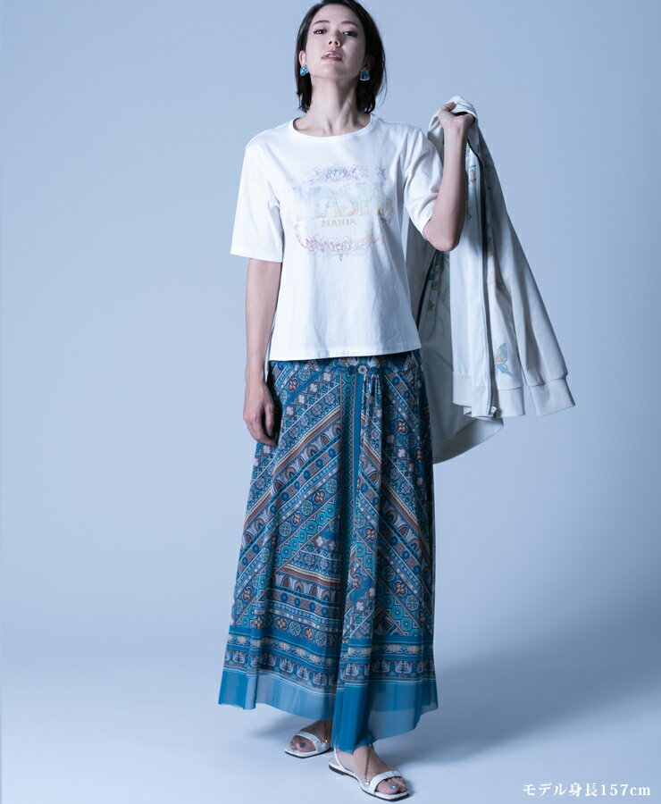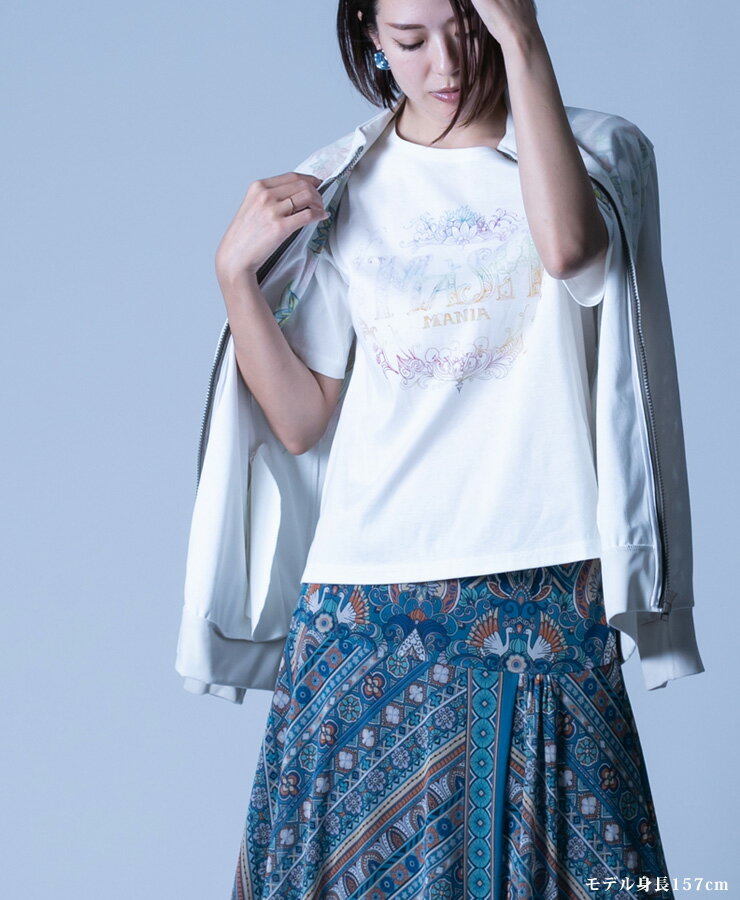 【SALE 30%OFF】mash mania コットンTシャツ Mashロゴ/ レディース 日本製 洗える トップス 半袖 裾スリット ロゴ 植物柄 綿スムース 綿100% コットン ホワイト ブラック マッシュマニア