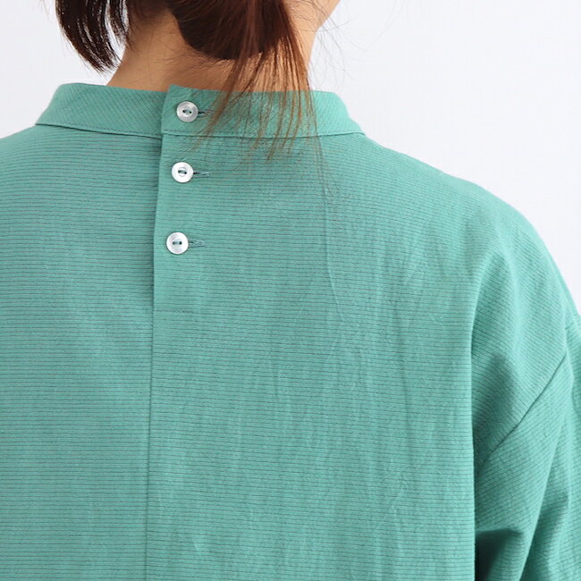 30%オフ SALE レディース プルオーバー 後ろボタン スタンドカラー ボリューム袖 日本製 ウリフシャツ(コットン100%)アップルハウス
